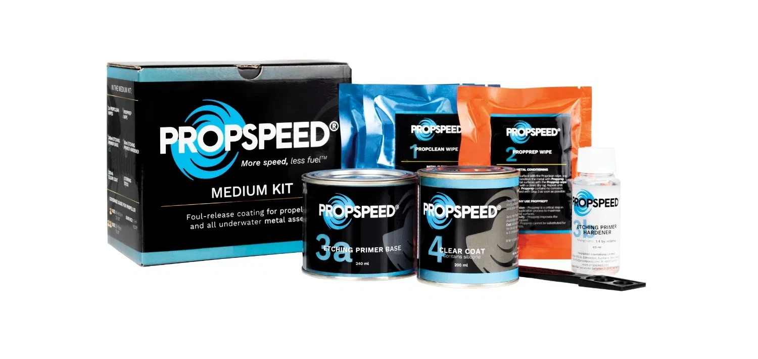 1 und de 200 ml de Clear Coat. La ultima capa del sistema Propspeed no tóxica que crea una capa exterior súper resbaladiza a la que los organismos marinos no pueden adherirse, además de mejorar la velocidad y reducir los costes de combustible.