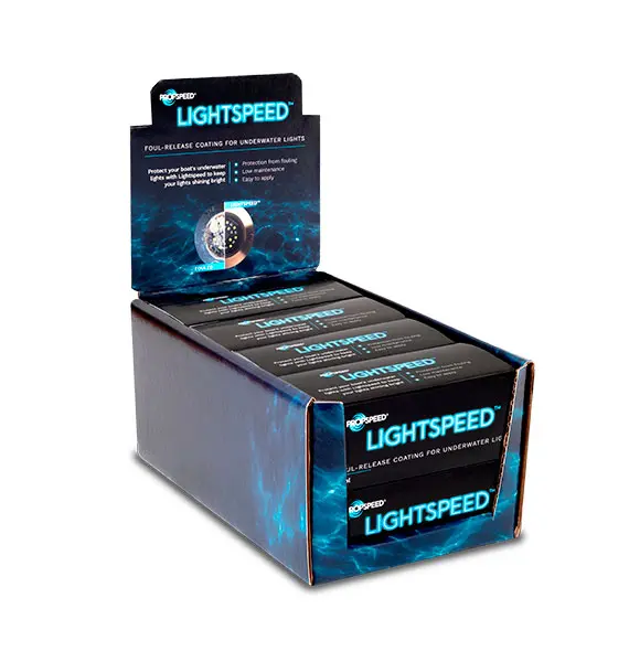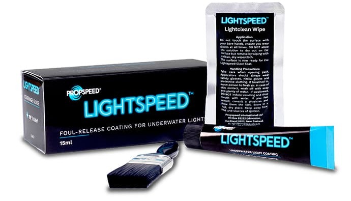 Este kit contiene 15 ml de Lightspeed Clear Coat, un recubrimiento no tóxico que forma una capa exterior súper resbaladiza a la que los organismos marinos no pueden adherirse, ¡y que hará que sus luces brillen durante toda la temporada!