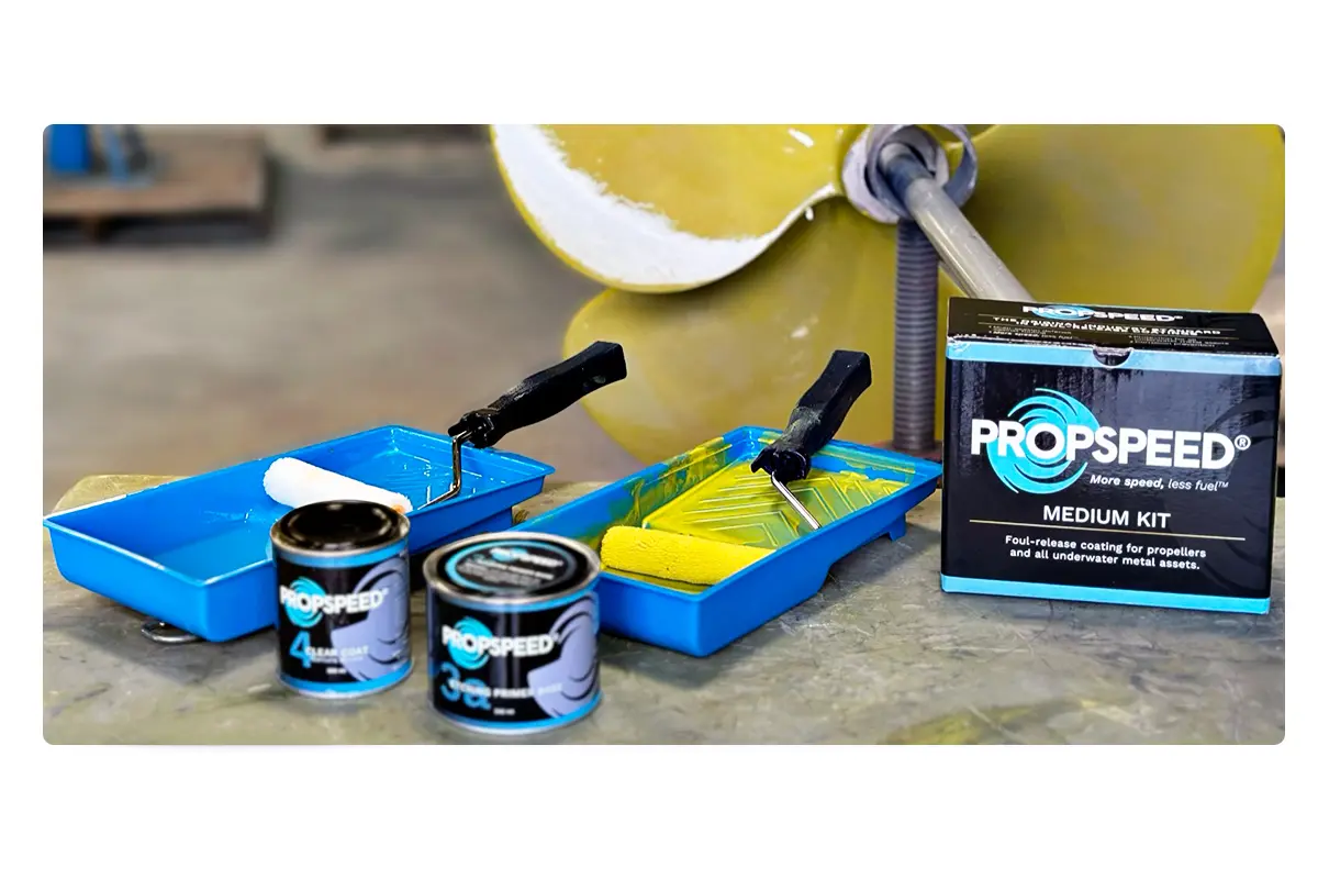 Mais informações sobre os kits comerciais Propspeed, desenvolvidos para grandes embarcações como barcos de pesca, ferries, rebocadores ou iates de luxo.